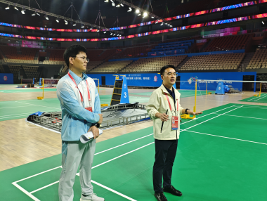 羽毛球比赛场地的特殊构造也颇具亮点,“该场地原本是可冻冰的冰场,通过铺设可拼装式木地板,可实现场地多功能转换,进一步适配不同赛事需求。”吕佩蕾说。